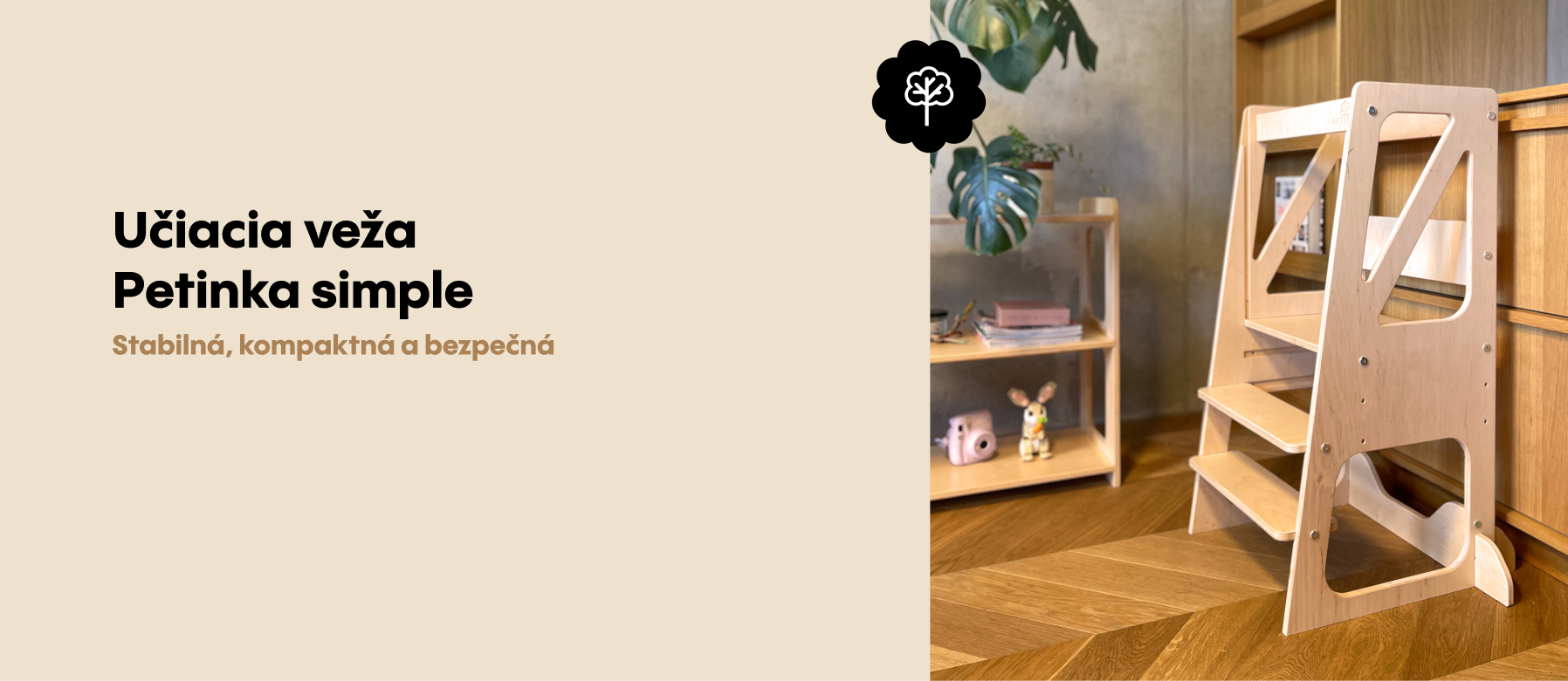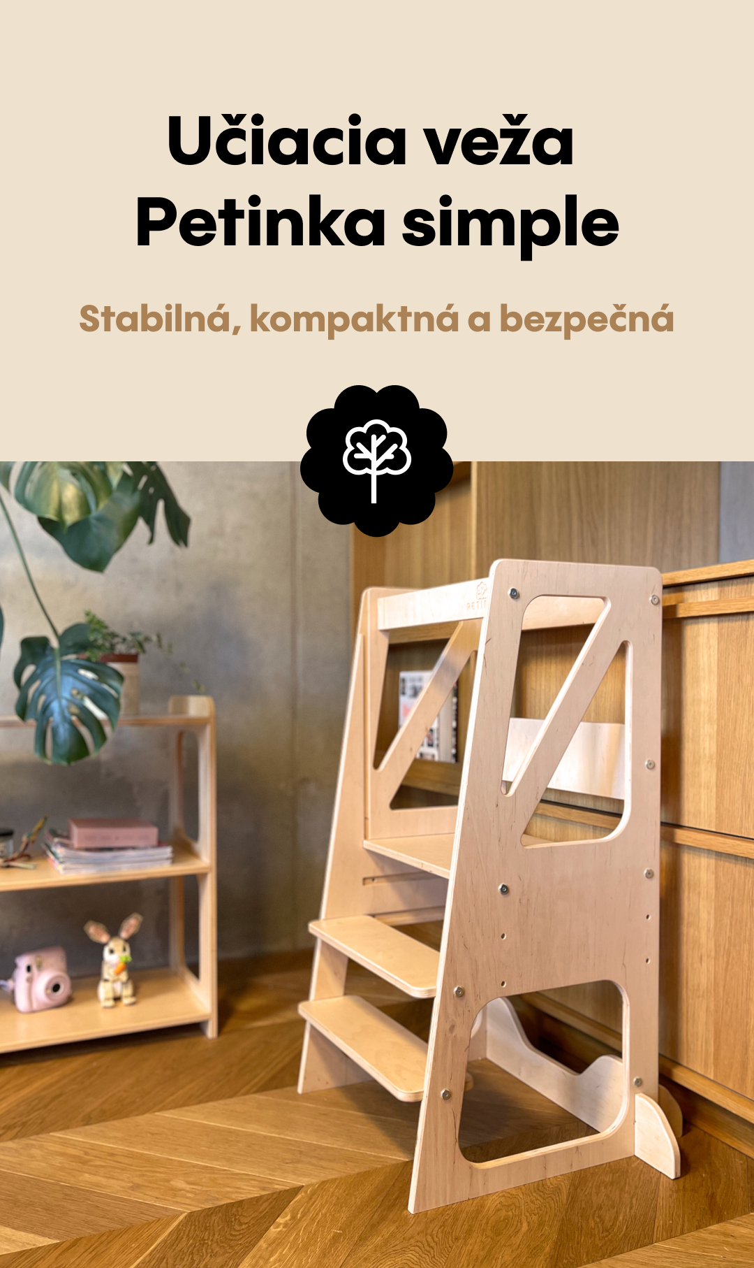 Učiacia veža Petinka simple– bezpečný a hravý pomocník do kuchyne aj každodenného života. Stabilná, kompaktná a krásne opracovaná. Vyrobená s láskou z kvalitnej brezovej...